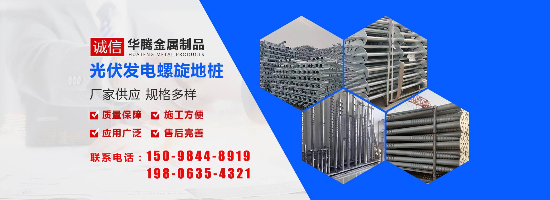 華騰金屬制品 (山東) 有限公司是螺旋地樁定制銷售公司,主營光伏螺旋地樁、光伏地樁等產(chǎn)品所生產(chǎn)的光伏螺旋地樁品種規(guī)格齊全,并可根據(jù)客戶的需求、圖紙、樣品研發(fā)產(chǎn)品。多年來我們以優(yōu)良的服務(wù)及高精端產(chǎn)品贏得了國內(nèi)外廣大客商的贊譽及肯定,光伏螺旋地樁等產(chǎn)品廣泛應(yīng)用于光伏太陽能電站樁基、房屋建筑樁基、...…